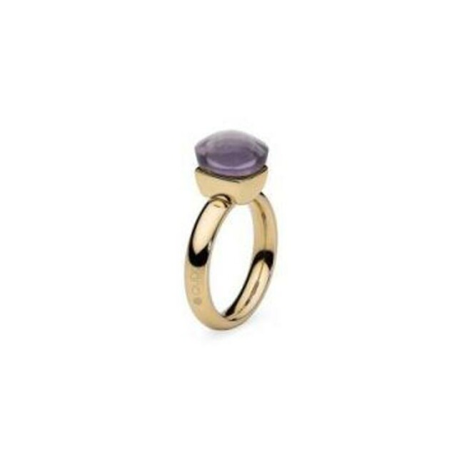 Bague QUDO Firenze en métal doré et pierre de couleur wisteria, taille 54