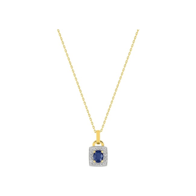 Collier en or blanc, saphir et diamant de synthèse 0.01ct