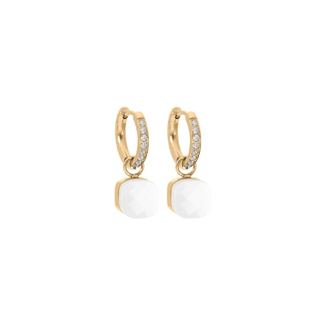 Boucles d'oreilles créoles QUDO Firenze en métal doré et pierre de couleur white