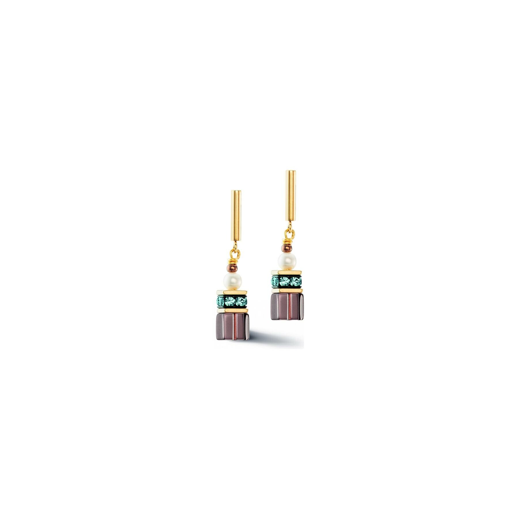 Boucles d'oreilles Coeur de Lion GeoCUBE Fusion Precious Pearl Mix en acier doré, perle d'eau douce, quartz fumé et strass