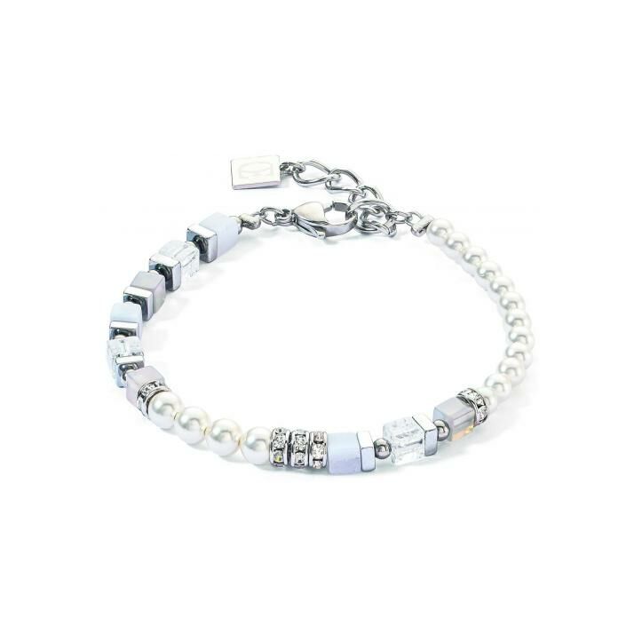 Bracelet Coeur de Lion Precious Fusion Offset en acier, calcédoine, agate et cristal de roche, cristaux Swarovski, strass et hématite