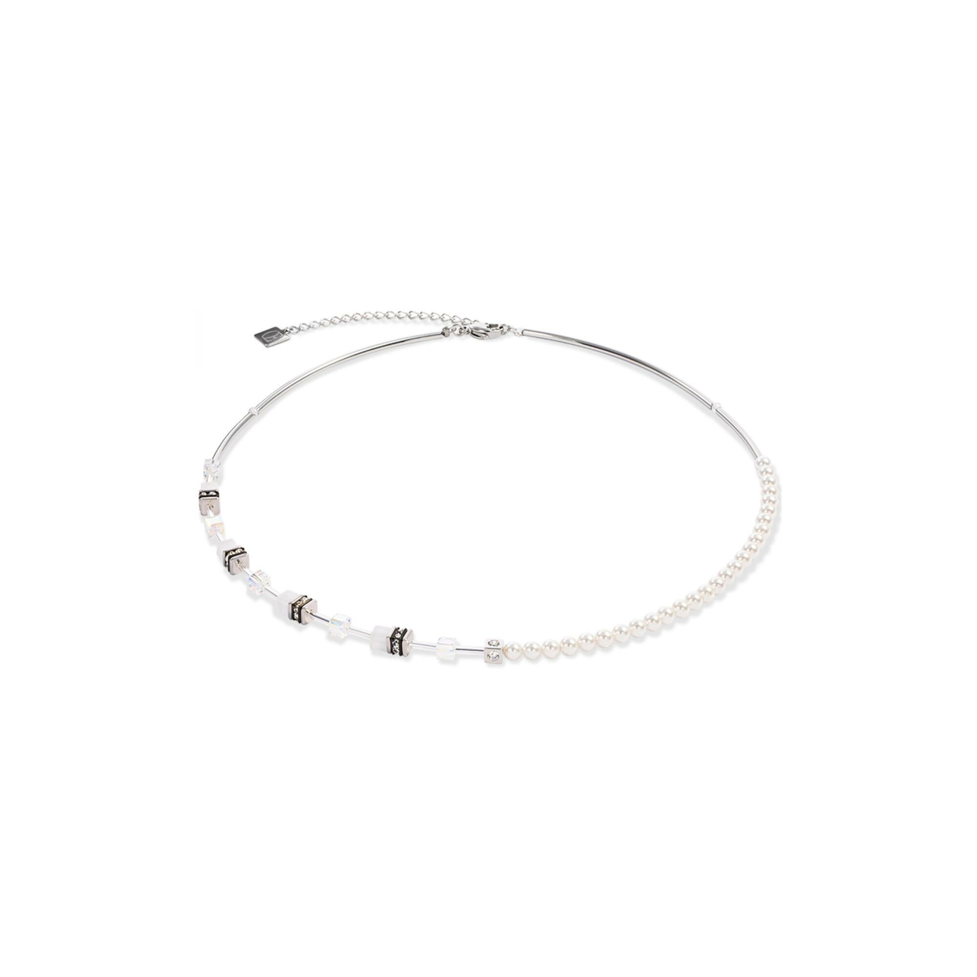 Collier Coeur de Lion GeoCUBE Mini Fusion Pearls en acier, perles de cristal, cristaux Swarovski et oeil de tigre et strass