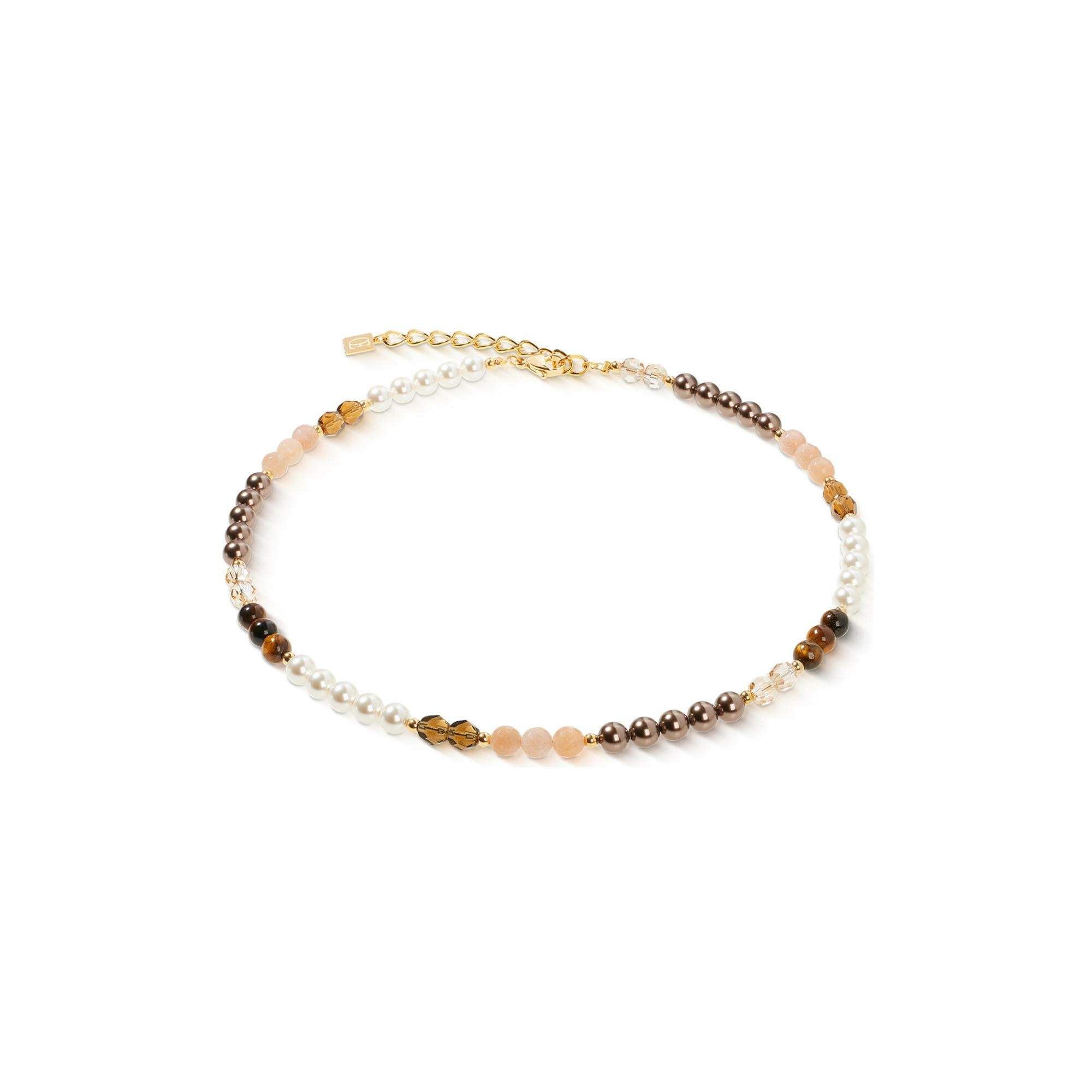 Collier Coeur de Lion Precious Elysia en acier doré, oeil de tigre, pierre de soleil et cristaux Swarovski et verre